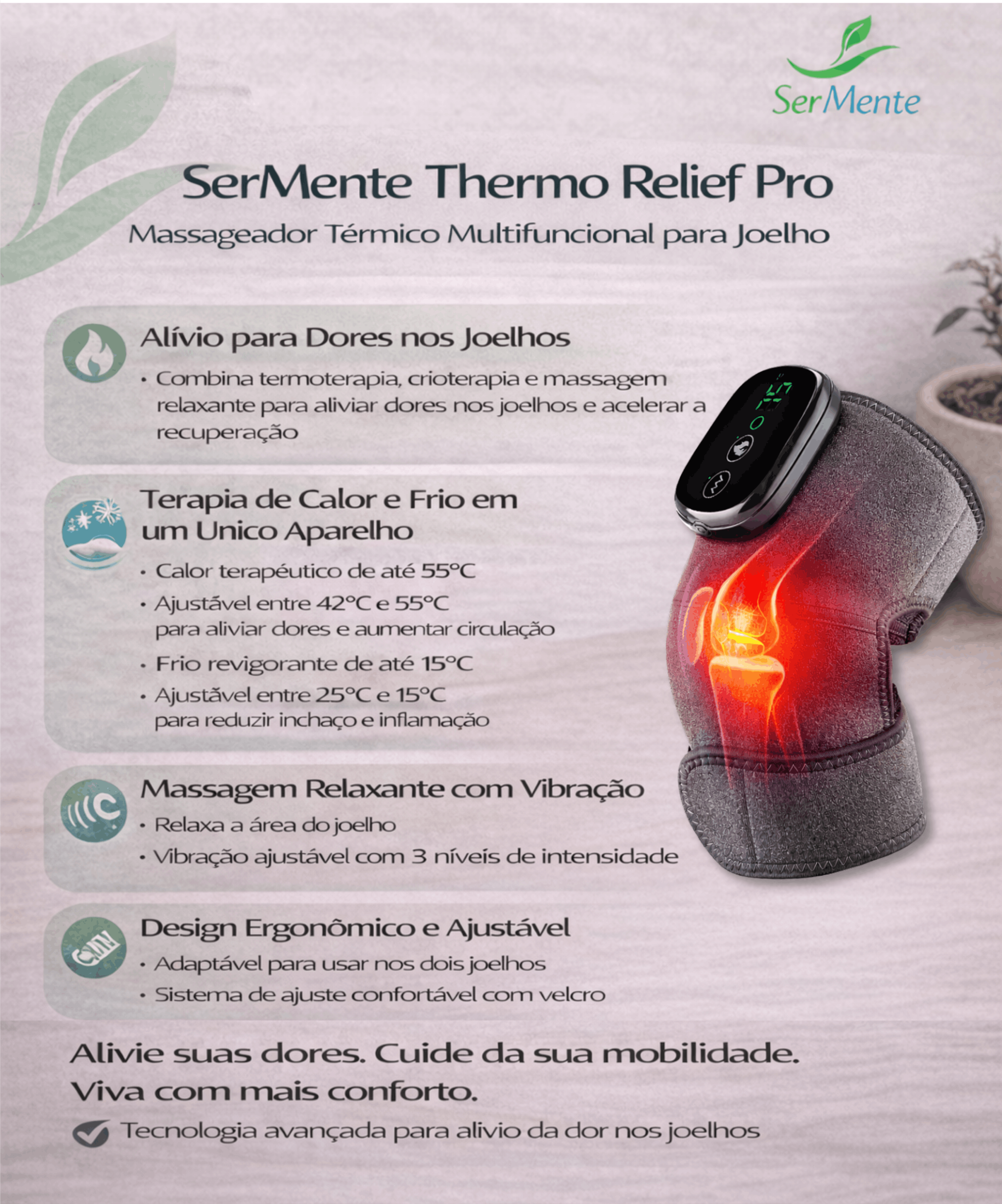 O SerMente THERMO RELIEF PRO™ combina calor terapêutico + vibração relaxante em um único dispositivo versátil que pode ser usado nos ombros, joelhos e cotovelos.